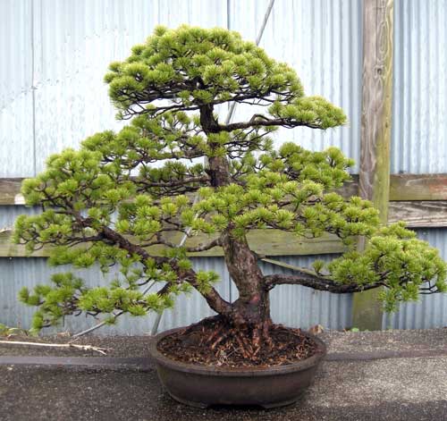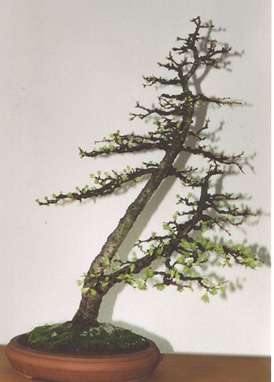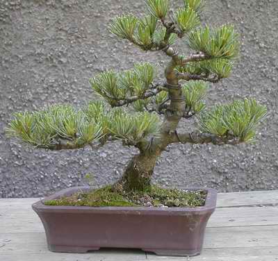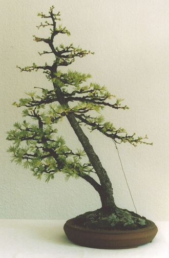 Lärche ca. 60 cm groß, entgegen den Fotos inzwischen in einer runden Japanschale.