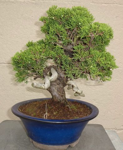 Juniperus Chinensis (Itoigawa), ca. 45 Jahre alter Shohinbonsai, DM 8 cm, Höhe: 18 cm, frei aufrechte Form, filigran gestaltet