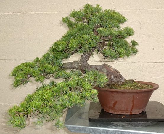 Mädchenkiefer ca. 60 cm groß, frisch getopft und überarbeitet. Steht in einer runden Frank Müller Schale.